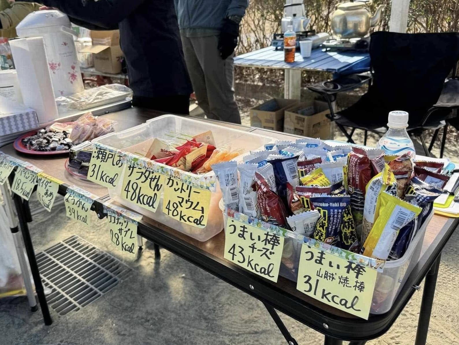 エイド食は個包装をメインとし、1つあたりのカロリーを明示します。
