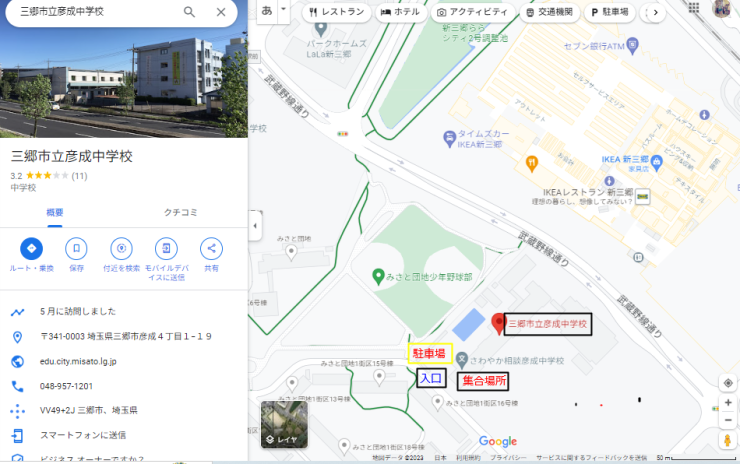 三郷市立彦成中学校(埼玉県三郷市彦成4-1-19)に集まっています