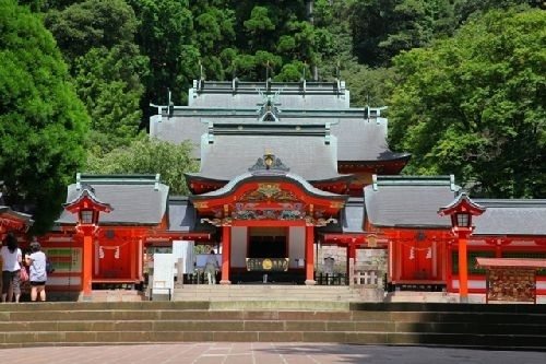 霧島町中央部。神代の創建という古社。噴火によって何度か移転されている。老杉が茂り荘厳な雰囲気。6 世紀に造られ、ニニギノミコトを祀っている。天照大神は孫であるニニギノミコトにこの国を治めよと命令した。ニニギノミコトは三種の神器を譲り受け、7 人のお供の神と1 人の道案内の神と共に高千穂の峰に降りたという天孫降臨の神話に由来します。
