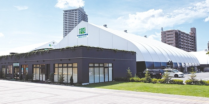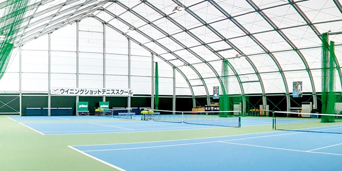 天井高約15mの、屋外と変わらない開放感と、冷暖房完備の快適テニススクールです。